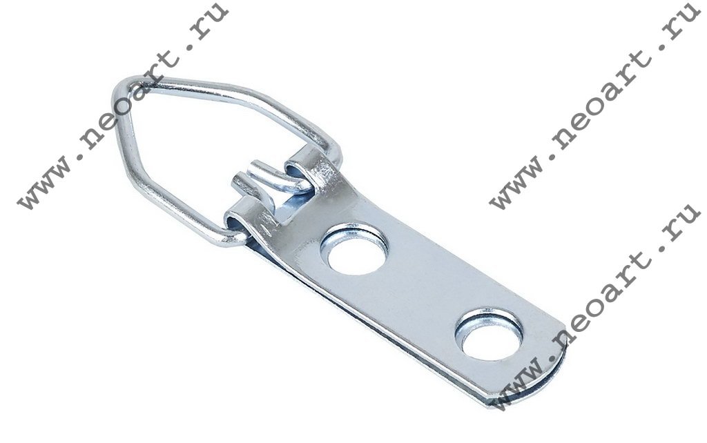 Стальная подвесная пластина шириной 9 мм с D-кольцом, с одним или двумя отверстиями для шурупов. Используется для подвески средних по размеру и тяжести рам из багета шириной от 18 мм.