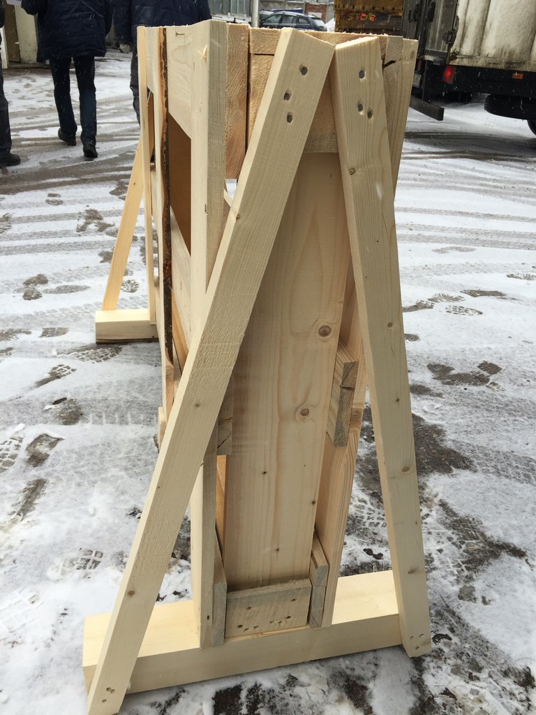 Емкость - 50 листов размером 1300х800 мм. Имеет устойчивое основание, предотвращающее опрокидывание на бок. Оборудован специальным прокладочным материалом (прокладки из прессованых опилок) для обеспечения сохранности стекла в пути.